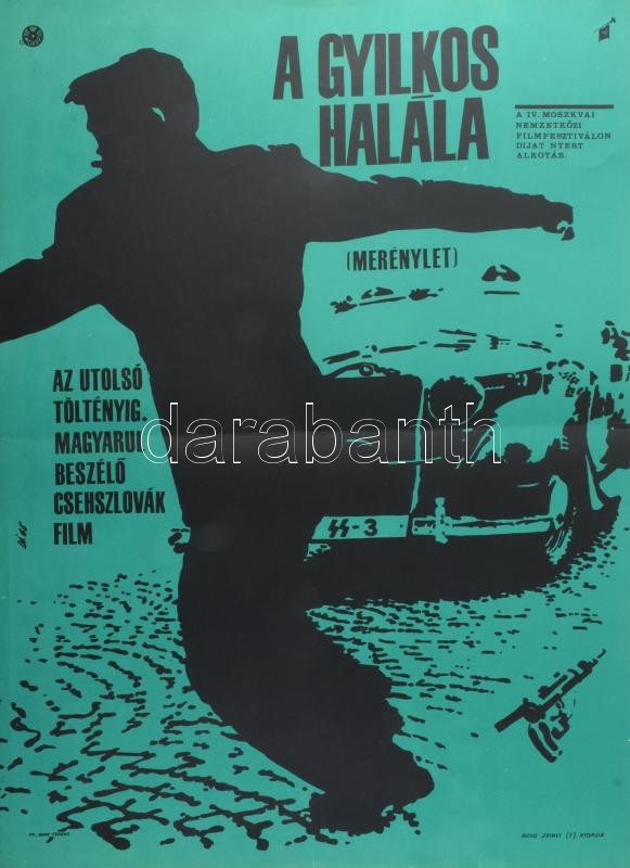 Darvas Árpád (1927-2015): A gyilkos halála, filmplakát, papír, jelzett a plakáton, hajtásnyomokkal, apró lapszéli szakadásokkal, 56,5×41 cm