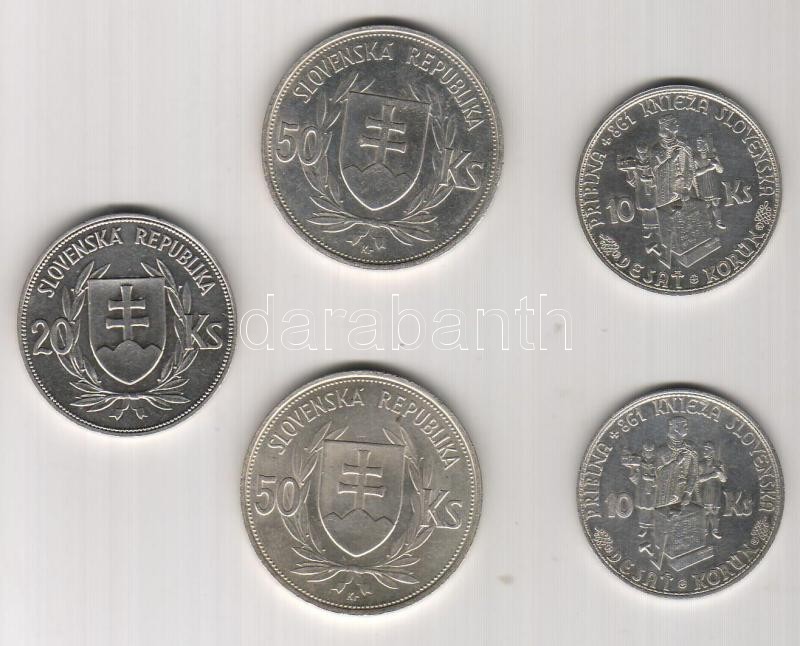 Szlovákia 1939. 20K Ag + 1944. 10K Ag (2x) + 50K Ag (2x) összesen 5db T:2+,2