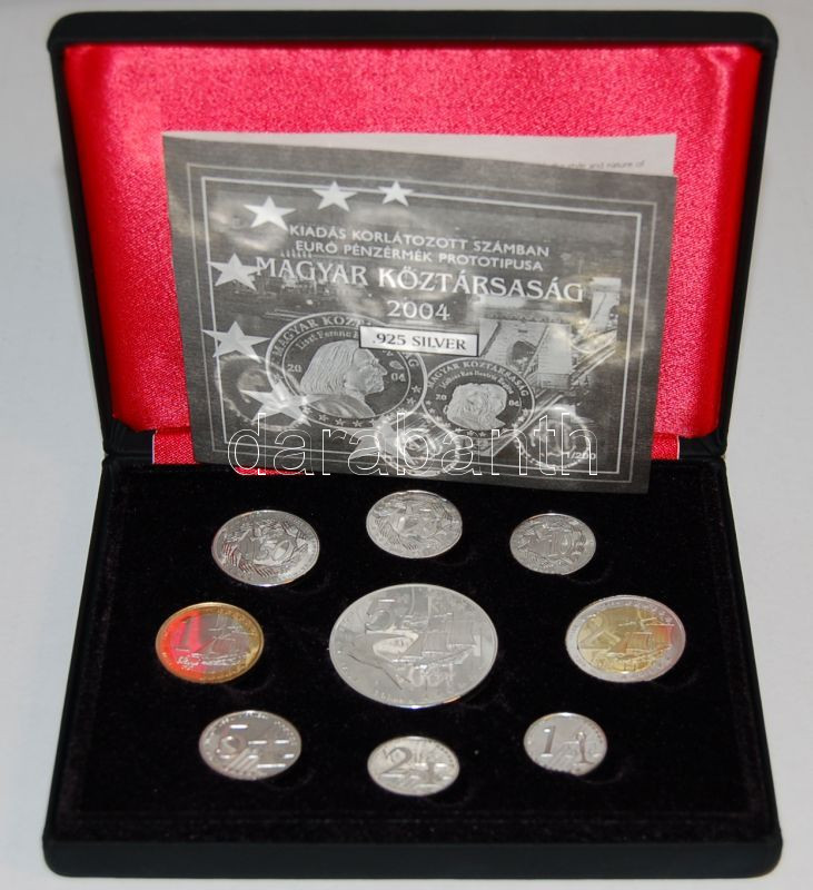 https://www.darabanth.com/en/63-Online-auction/63.0/Numismatics/~282/2004-Magyar-EURO-Ag-proba-szet-diszdobozban-tanusitvannyal-9klf-db-TPP-RRR-Csak-200db-let~II124752