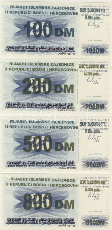 Bosznia 1996. 25D (4x) 100DM, 200DM, 500DM, 800DM felülnyomással RR!! ...