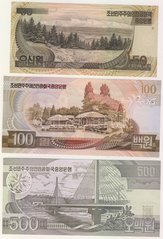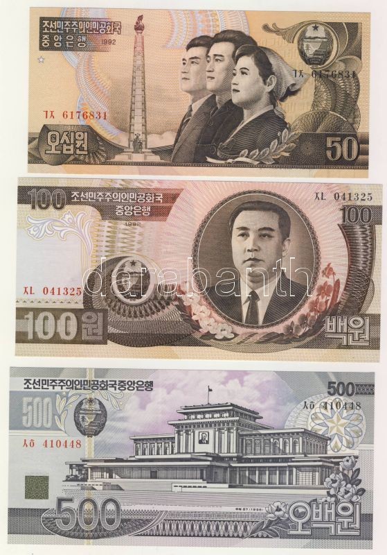 Észak-Korea 1992-98. 1W-500W 6klf bankjegy, teljes sor T:I