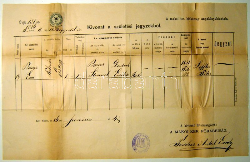 1886 Fischer Antal Énoch makói főrabbi aláírása okiraton