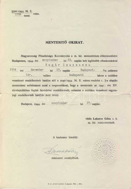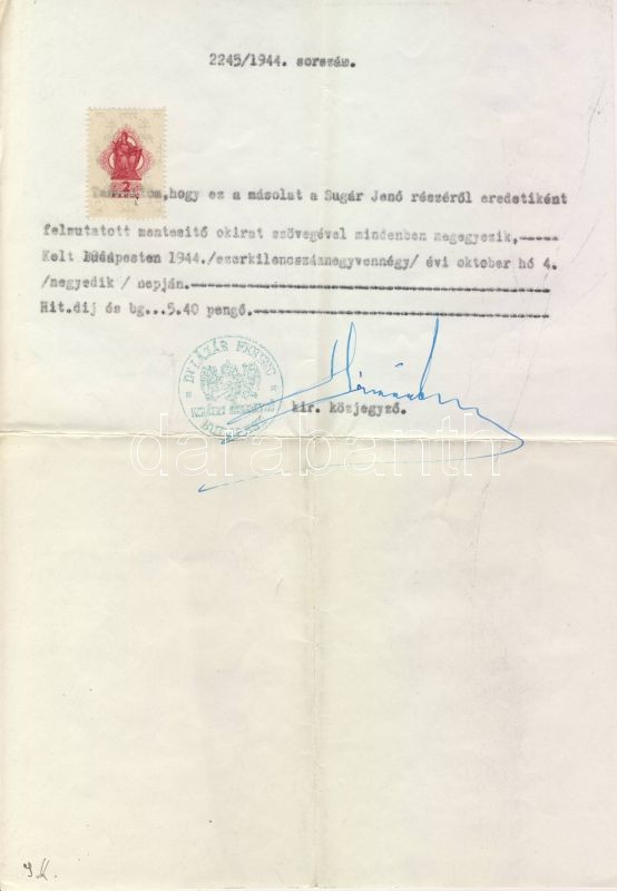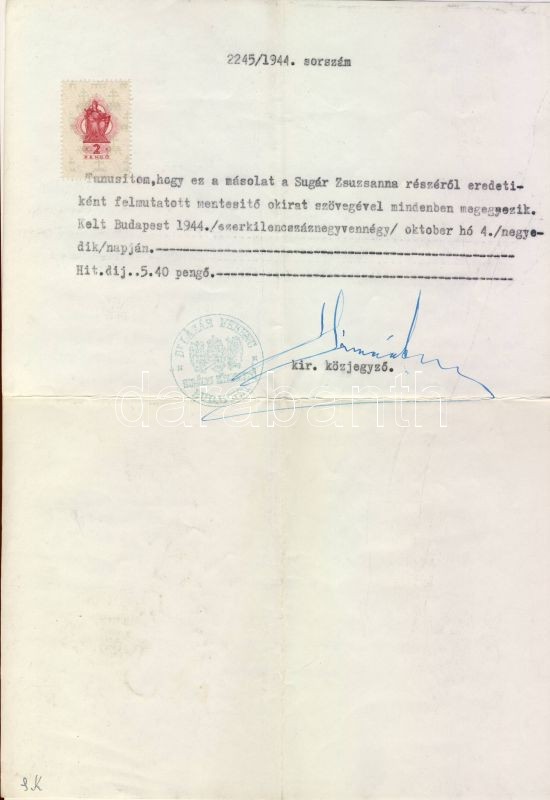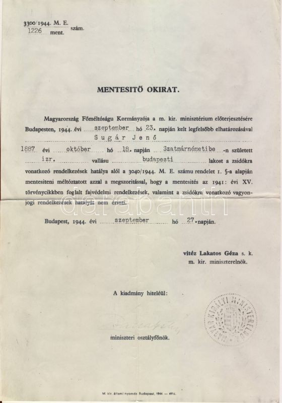 https://www.darabanth.com/en/65-Online-auction/65.0/Other-collectibles/~215/1944-Zsidotorveny-aloli-mentesito-okirat-eredetije-es-2-db-okmanybelyeges-hiteles-masolat~II127581