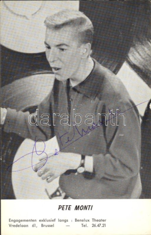 Pete Monti belga énekes aláírása fényképen