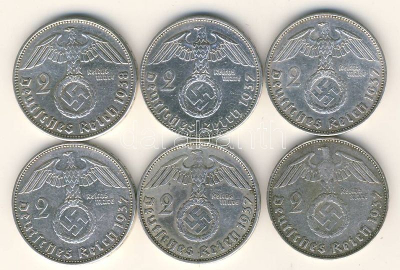 https://www.darabanth.com/en/67-Online-auction/67.0/Numismatics/~317/Nemet-Birodalom-1937-38-2M-Ag-6x-Hindenburg-nagyalaku-hk-tel-T23~II131569