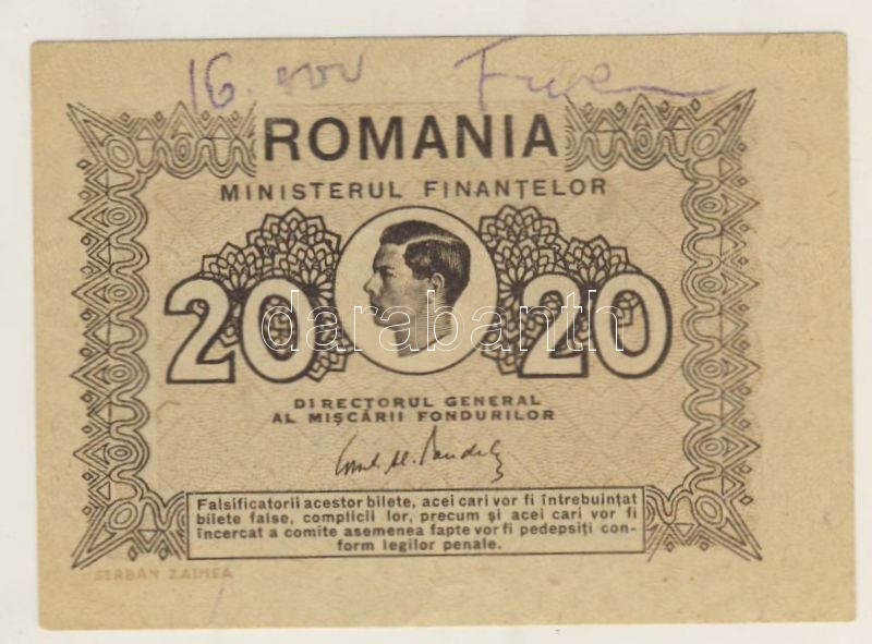 https://www.darabanth.com/en/69-Online-auction/69.0/Numismatics/~249/Romania-1945-20L-korabeli-ceruzas-rajegyzessel-TI~II133982