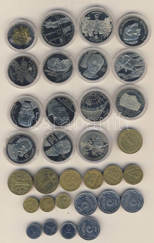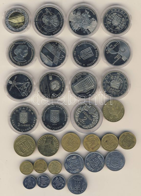 Ukrajna modern tétel 32db, 1k (2x),2k (1x),5k (4x),10k (3x),25k (3x),50k (1x),1Gr (3x),2Gr (12x),5Gr (3x) ebből 15db T:PP + 1Gr 50db-os eredeti rollniban