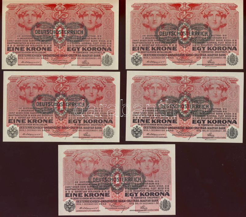 1916. 1K (5x) fekete "Deutschösterreich" fny-sal, benne 2x2 egymásutáni sorszámmal T:I