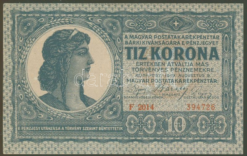 1919.augusztus 9. 10K "F" betűvel! erősebben felfelé csúszott elő- és ...
