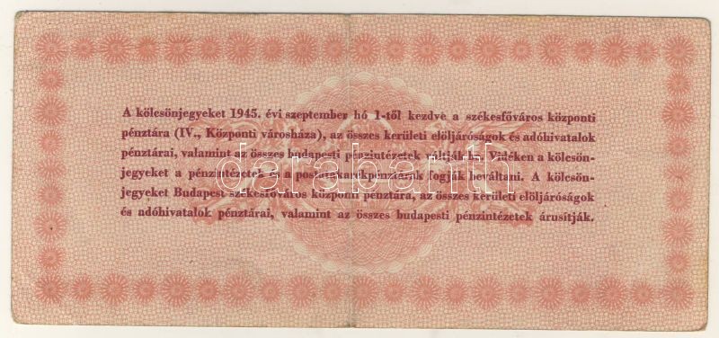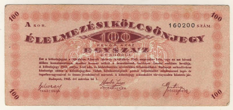 https://www.darabanth.com/en/69-Online-auction/69.0/Numismatics/~266/Budapest-1945-100P-Elelmezesi-kolcsonjegy-TII-~II133842