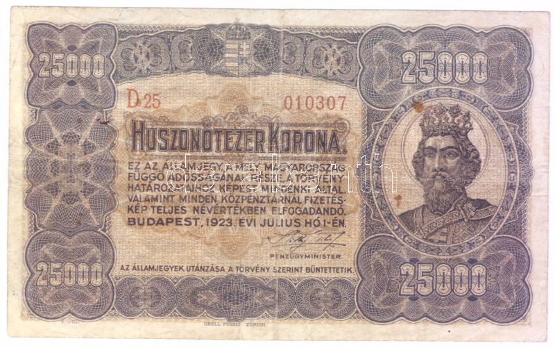 1923. 25.000K "Orell Füssli" T:II-/III+