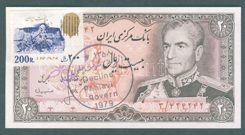 Irán 1979. 20R előlapon propaganda bélyeggel + bélyegzővel T:I R!