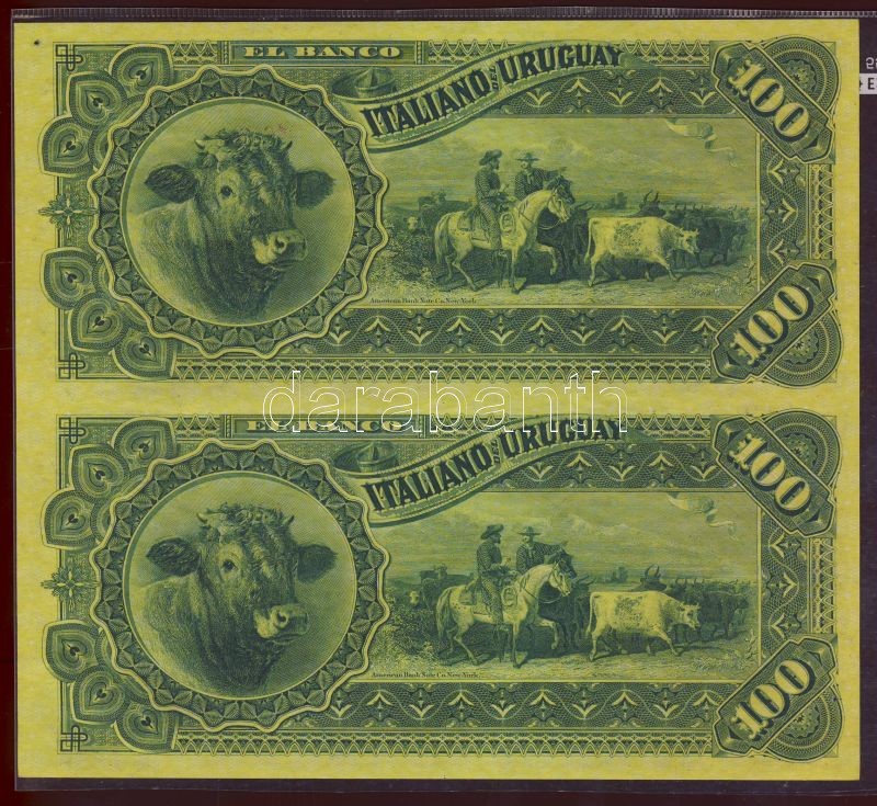Uruguay/Banco Italiano/Montevideo 1887. 100P 2-es függőleges ívben T:I...