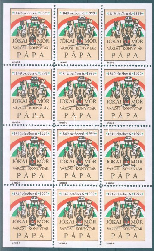 1849 okt. 6 évfordulója 12db-os levélzáró kisív