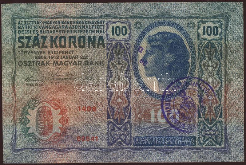 https://www.darabanth.com/en/73-Online-auction/73.0/Numismatics/~214/1912-100K-Bacs-Bodrog-Varmegye-Apatini-Jaras-Foszolgabiraja-lila-korbelyegzovel-TII-~II145716