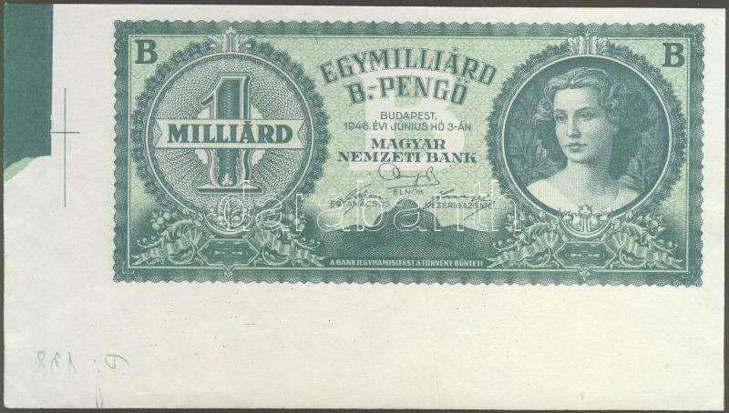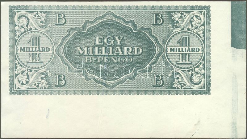 1946. 1000.000.000 B.-pengő "zöld" bal alsó széles sarokívnél mindkét ... https://www.darabanth.com/en/73-Online-auction/73.0/Numismatics/~214/1946-1000000000-B-pengo-zold-bal-also-szeles-sarokivnel-mindket-oldali-illetsztokeresz~II145617