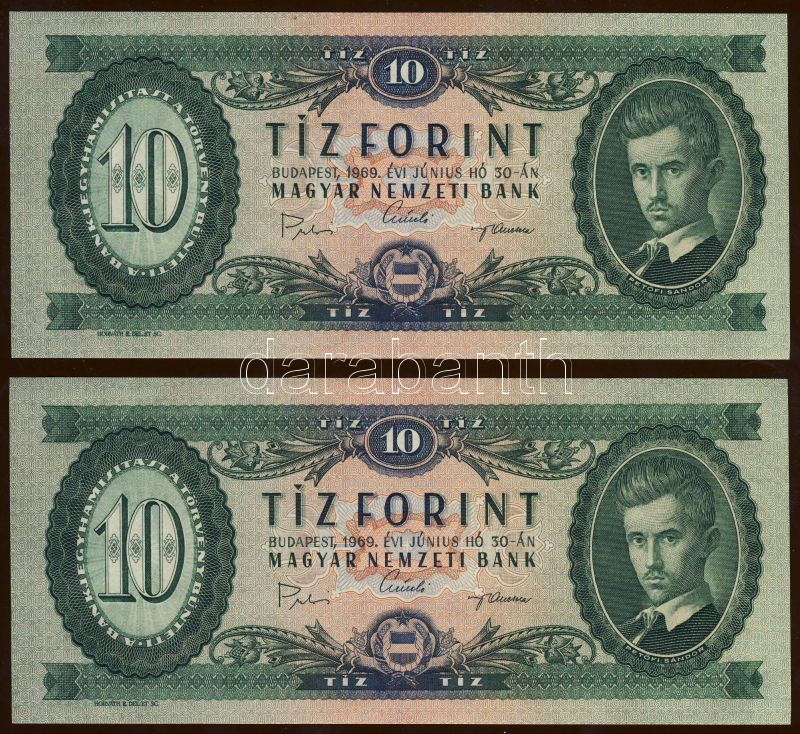 1969. 10Ft(2x) kevés ugrású sorszámokkal T:I