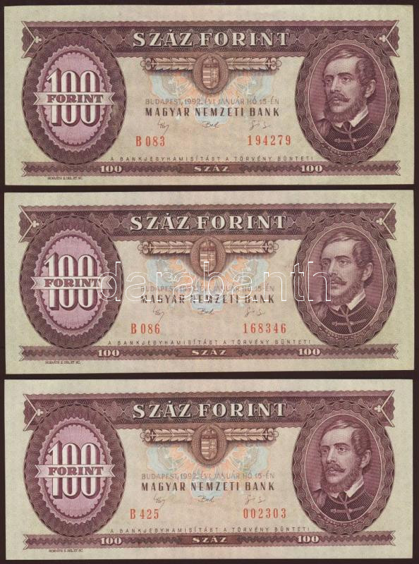 1992. 100Ft T:I(4x) T:II+ csak egyszer hajtott(1x)
