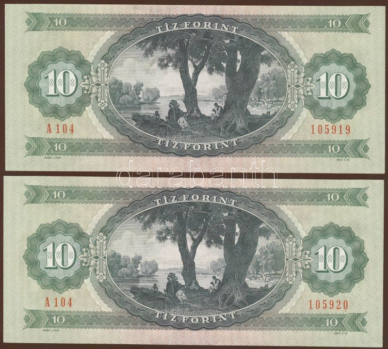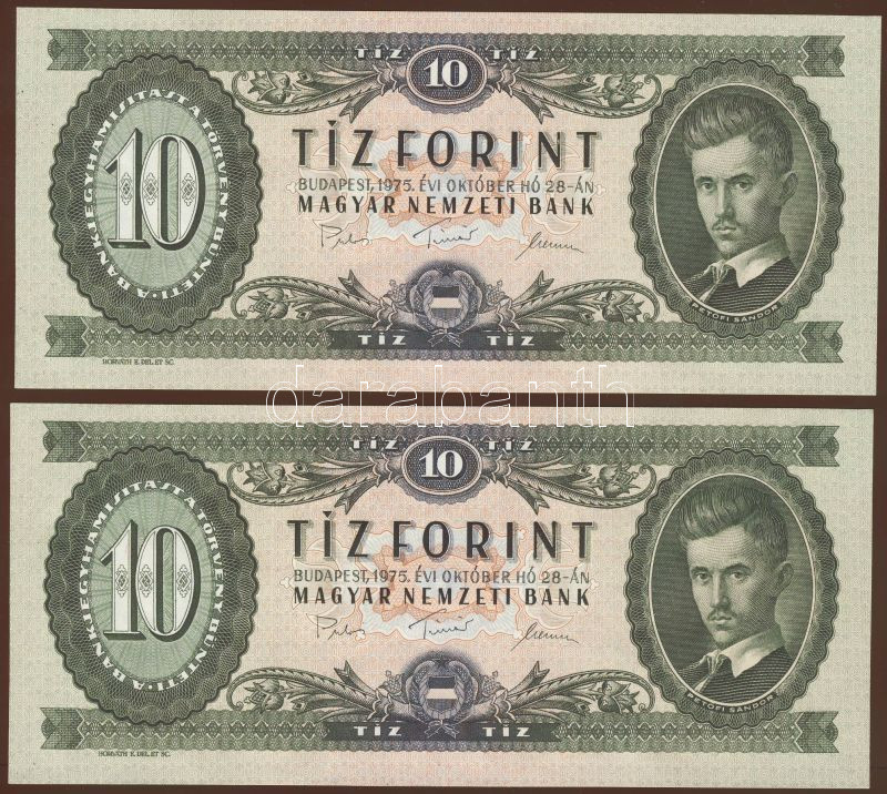 1975. 10Ft (2x) egymásutáni sorszámmal T:I