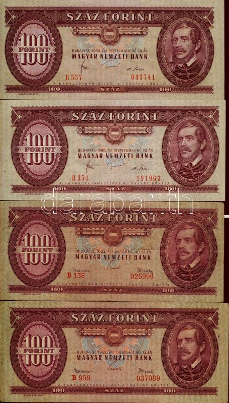 100Ft 1949. (2x), 1962. (4x), 1980. (2x), 1984. (2x), 1992. (1x), 1993. (1x) összesen 12db T:II+,II,II/III