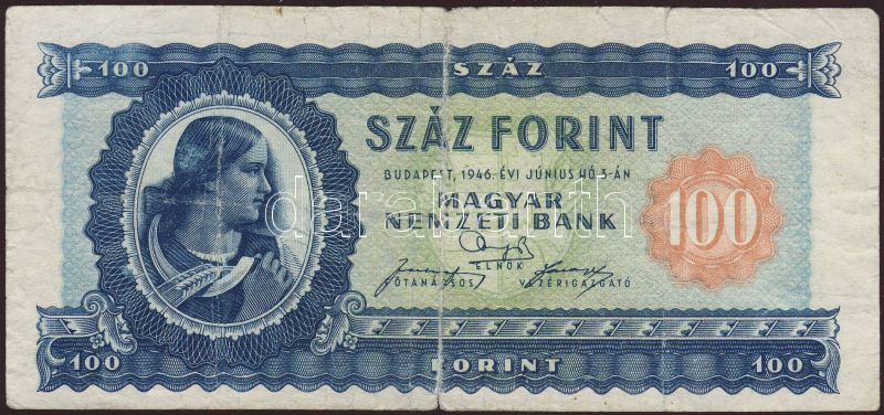 1946. 100Ft lefelé csúszott nyomat T:IV