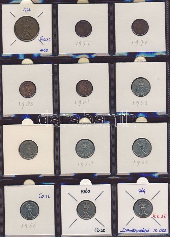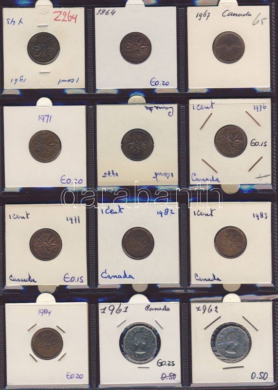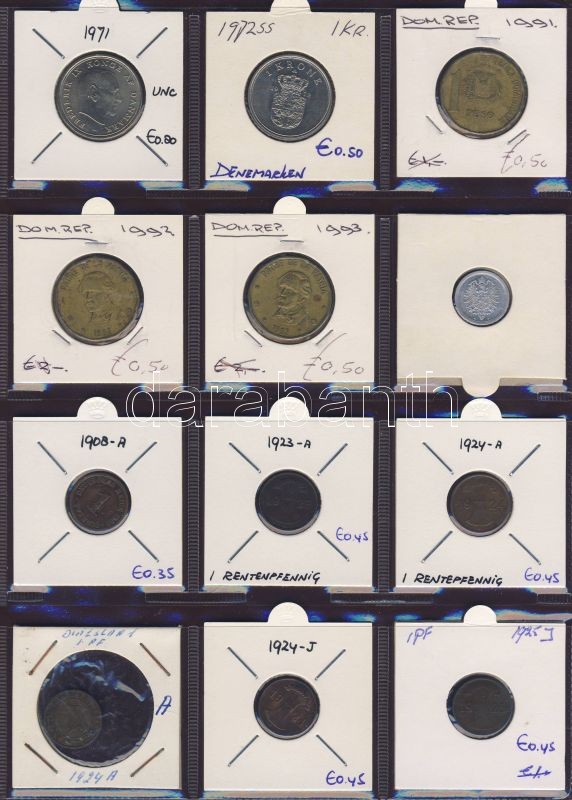 Hagyaték gyűjtemény, egész világ, régi és új, 216db érme, benne nominál és sok tengerentúl, 18 lapos, laponként 12 férőhelyes, újszerű albumban T:1,2 (többsége),3 (kevés)
