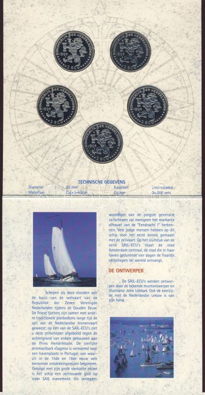 Hollandia 1995. 2Ecu 5klf db "Hajók" díszes szettben, tanúsítvánnyal T...