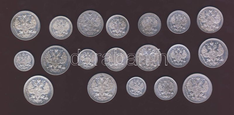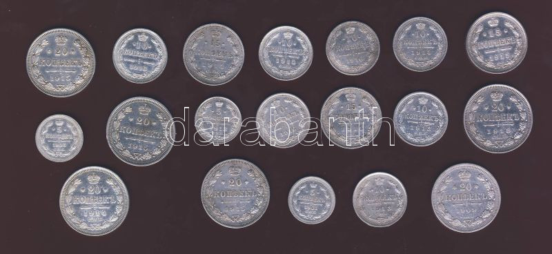 Oroszország 1901-1916. 5k Ag (3x), 10k (7x), 15k (3x), 20k (6x) T:1/2,2 Összesen 19db.