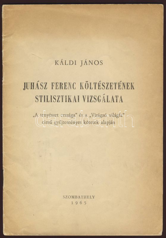 Káldi János: Juhász Ferenc költészete dedikált kiadvány