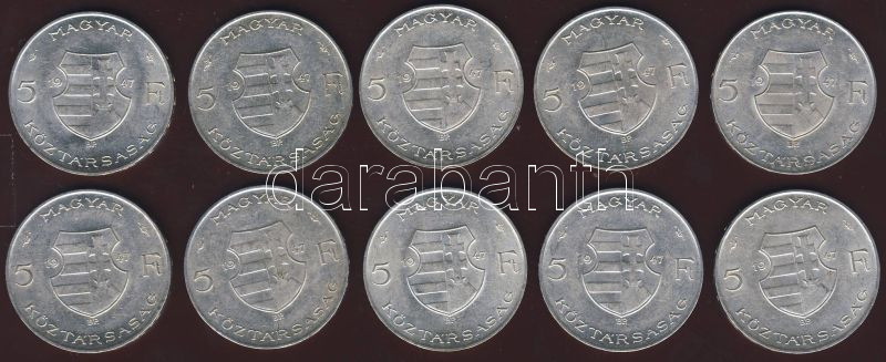 https://www.darabanth.com/en/77-Online-auction/77.0/Numismatics/~357/1947-5Ft-Ag-Kossuth-10x-T2-tobbseg-23-keves~II153031