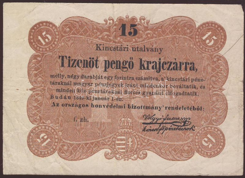 1849. "Kossuth bankó" 15kr T:II