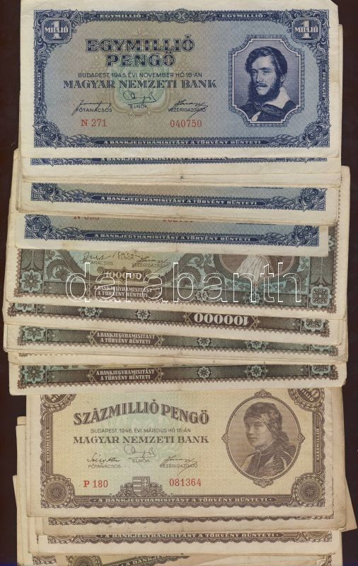 Kis pengő, infla tétel 175db bankjegy, 14 klf T:II