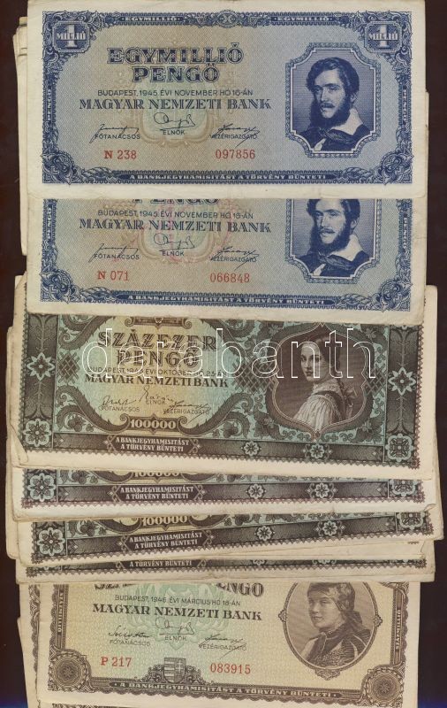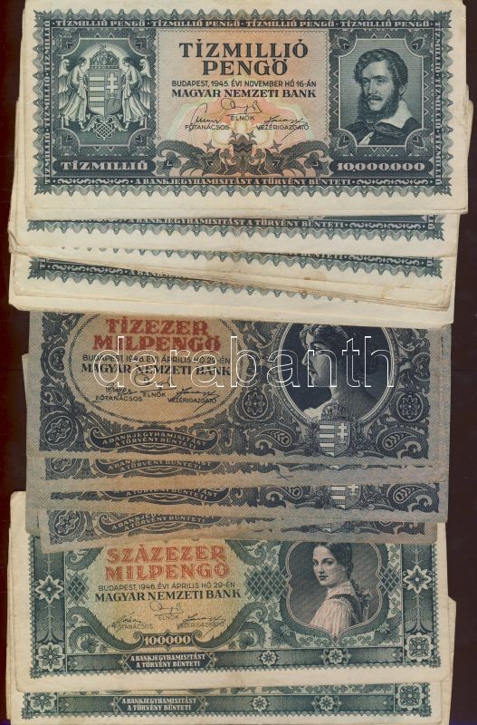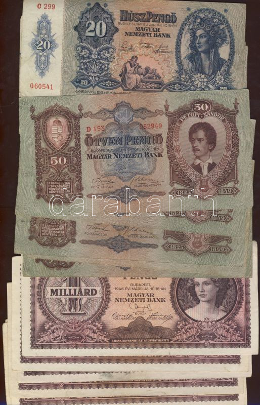 Kis pengő, infla tétel 175db bankjegy, 14 klf T:II