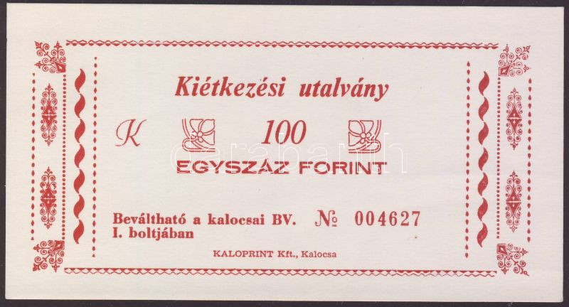 https://www.darabanth.com/en/78-Online-auction/78.0/Numismatics/~296/Kalocsabortonpenz-Kietkezesi-utalvany-100Ft-TI~II158957