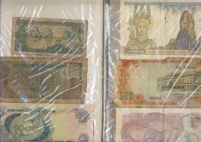 2db ajándék kollekció, benne Francia-Indokína, Észak- és Dél-Vietnam, Kambodzsa, régi és új, 41db bankjegy T:I,II,III,IV