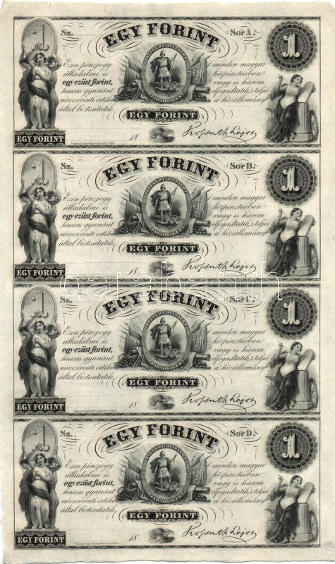 18.. Emigrációs "Kossuth bankók" 1Ft A,B,C,D összefüggő 4-es ívben T:I