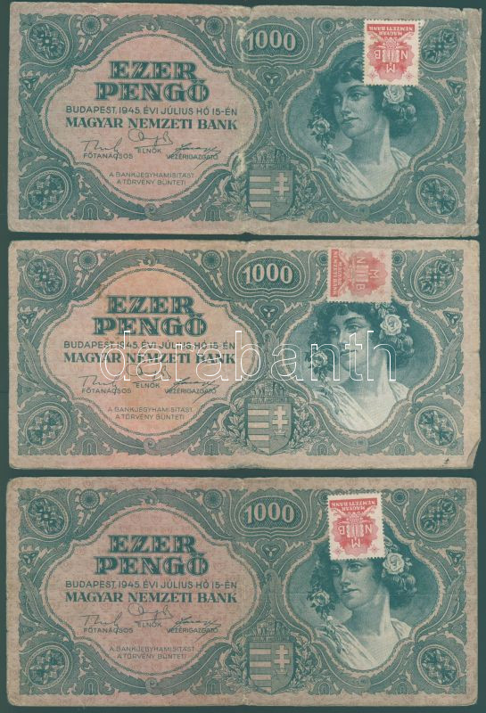 1945. 1000P (5x) benne 3db "egyenes tetejű" 3-sal T:III,IV