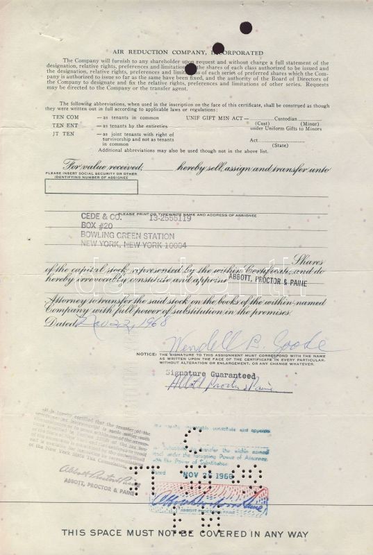 USA 1953-68. 6db klf dekoratív részvény