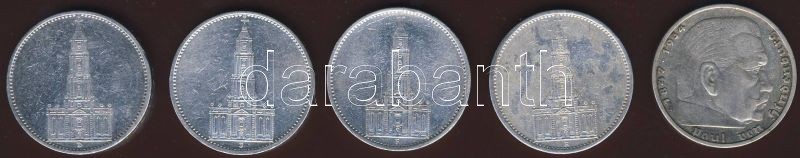 Német 3.Birodalom 1934-35. 5M Ag Garnisonskirche" (4x) + 1936. 5M Ag "...