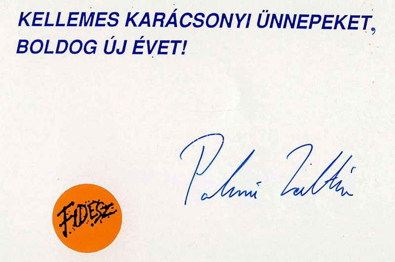 2000 Pokorni Zoltán Fidesz-es politikus aláírása üdvözlőlapon