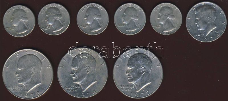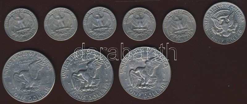 USA kis tétel 1966-82. 1/4$ "Franklin" (5x) + 1/2$ "Kennedy" (1x), 1$ "Eisenhower" (3x) T:2,3 Összesen 9db!