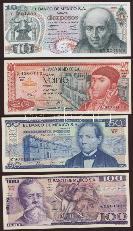 Mexikó 1977. 10P, 20P + 1981. 50P, 100P T:I