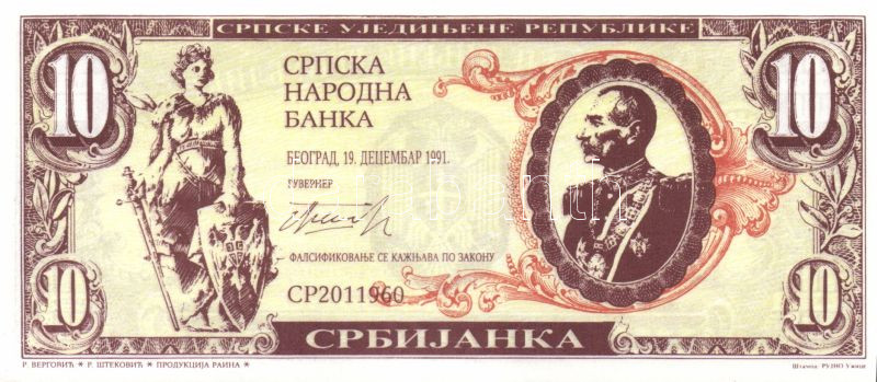 Szerbia 1991. 10Szr fantáziapénz T:I