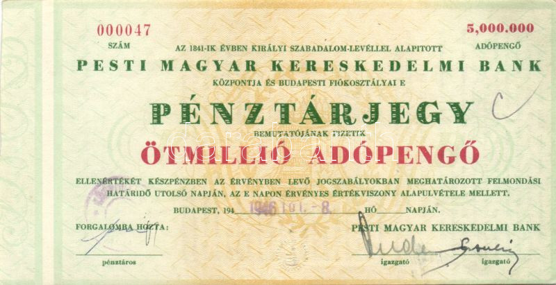 https://www.darabanth.com/en/84-Online-auction/84.0/Numismatics/~325/cca-1946-A-Pesti-Magyar-Kereskedelmi-Bank-penztarjegye-5000000AP-blanko-szelveny-nelkul-~II179859