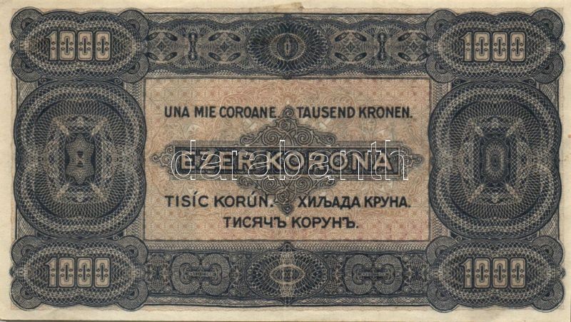 1923. 1000K 8f fny-sal T:II+ felső szélén papírhibából eredeő parányi ...