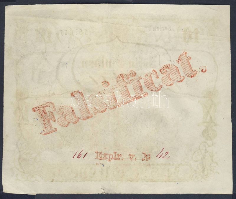 1863. 10G érdekes korabeli hamisítványa vízjeles papíron, hátoldalon piros "Falsificat. 161 Explr. v. Nr 42" T:II