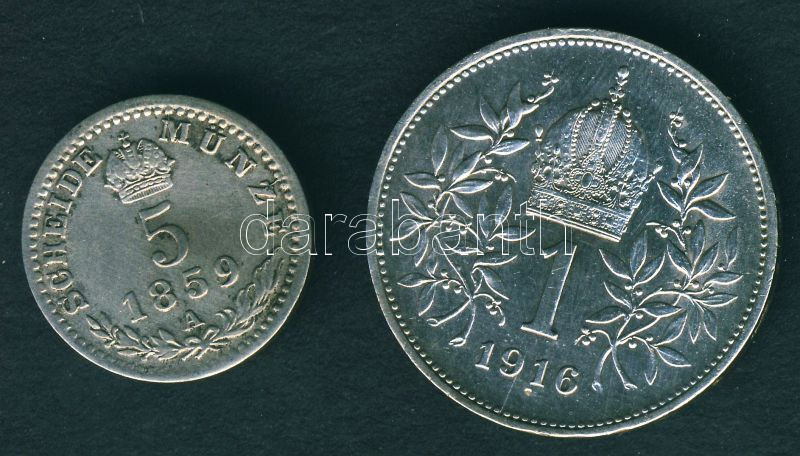 Ausztria 1859A 5Kr Ag T:3/4+ + 1916. 1K Ag T:2