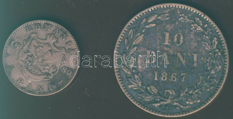 Románia 1867. 10B T:3/4+ + 1880. 2B T:3