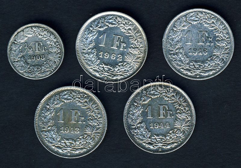 https://www.darabanth.com/en/88-Online-auction/88.0/Numismatics/~342/Svajc-12Fr-Ag-1908-plus-1Fr-Ag-1916-1943-1944-1962-T23-3-kis-ph~II192256