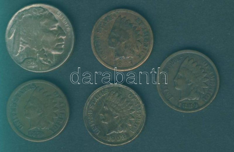 https://www.darabanth.com/en/88-Online-auction/88.0/Numismatics/~342/USA-1c-Indian-1879-1889-1897-1908-plus-5c-Indian-1929-Osszesen-5klf-db-T23plus-3plus-3~II190791